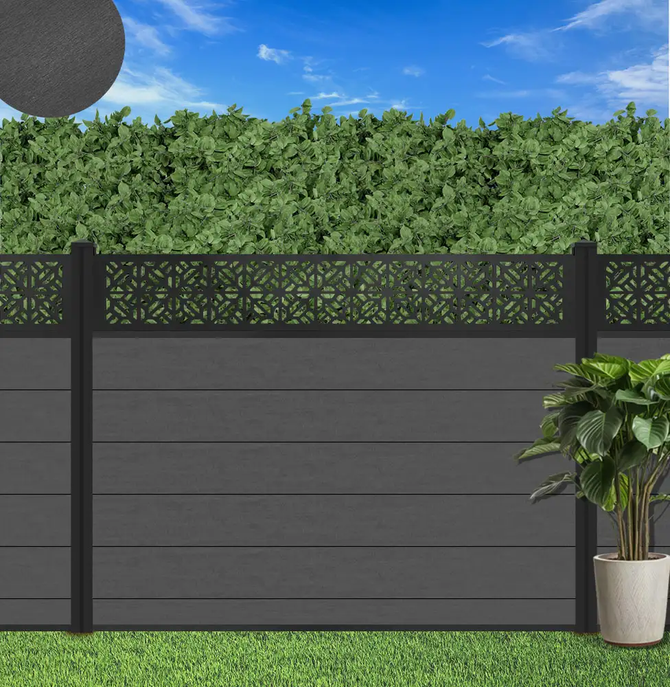 Alpha Composite Fencing is a wood-plastic composite decking (WPC ) that has a natural beauty and the feel of real wood. If you are looking for a fencing solution that is low maintenance, durable, and stylish than look no further. Our composite panels come in a variety of natural shades to match any landscape. Plus, clever tongue and groove installation gives a flawless finish that can be assembled quickly and easily.